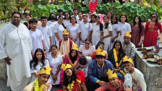 Minister Padarath and Daughter Join Chinmaya Vidyalaya for Saraswati Puja Celebrations